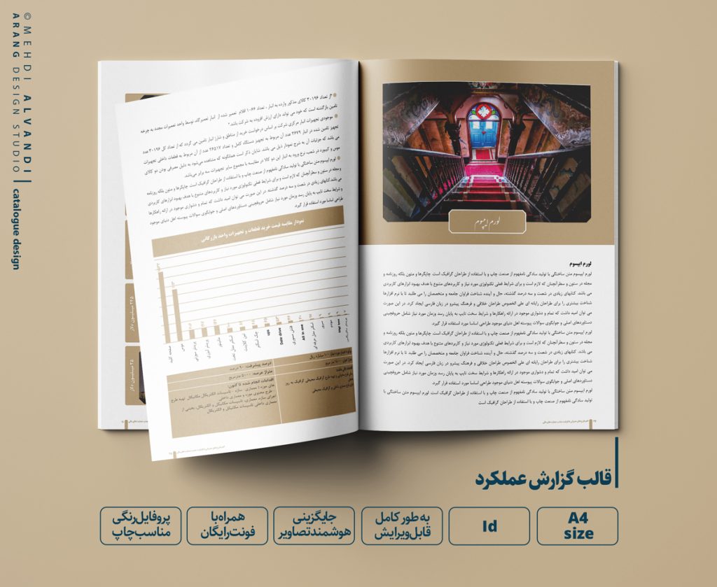 قالب گزارش عملکرد یک تمپلیت حرفهای و لایهباز ایندیزاین است که به طور ویژه برای طراحی گزارش عملکرد اداری و سازمانی طراحی شده است. اگر شما هم نیاز به تهیه گزارش سالانه شرکت، ارائه نتایج پروژه یا یک گزارش کاری حرفهای دارید، این محصول دقیقاً برای شماست. این قالب آماده در قطع استاندارد رحلی (A4) و با تنظیمات مناسب برای چاپ با کیفیت ارائه شده است.